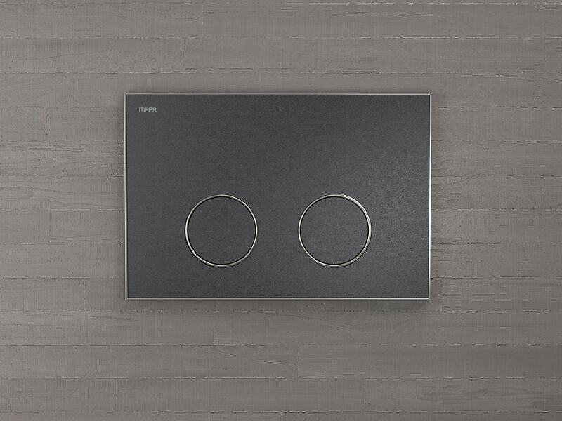 Die Betätigungsplatte MEPA Zero besticht durch ihr zeitloses Design, das elegant umgesetzt und auf das Wesentliche reduziert ist. Der zentrale Chromring unterstreicht die geometrische Formgebung – charakteristisches Merkmal ist ein innovatives Bedienkonzept, das bei der WC-Betätigung die Wahl der kleinen und großen Spülmenge mit nur einer Taste ermöglicht.
